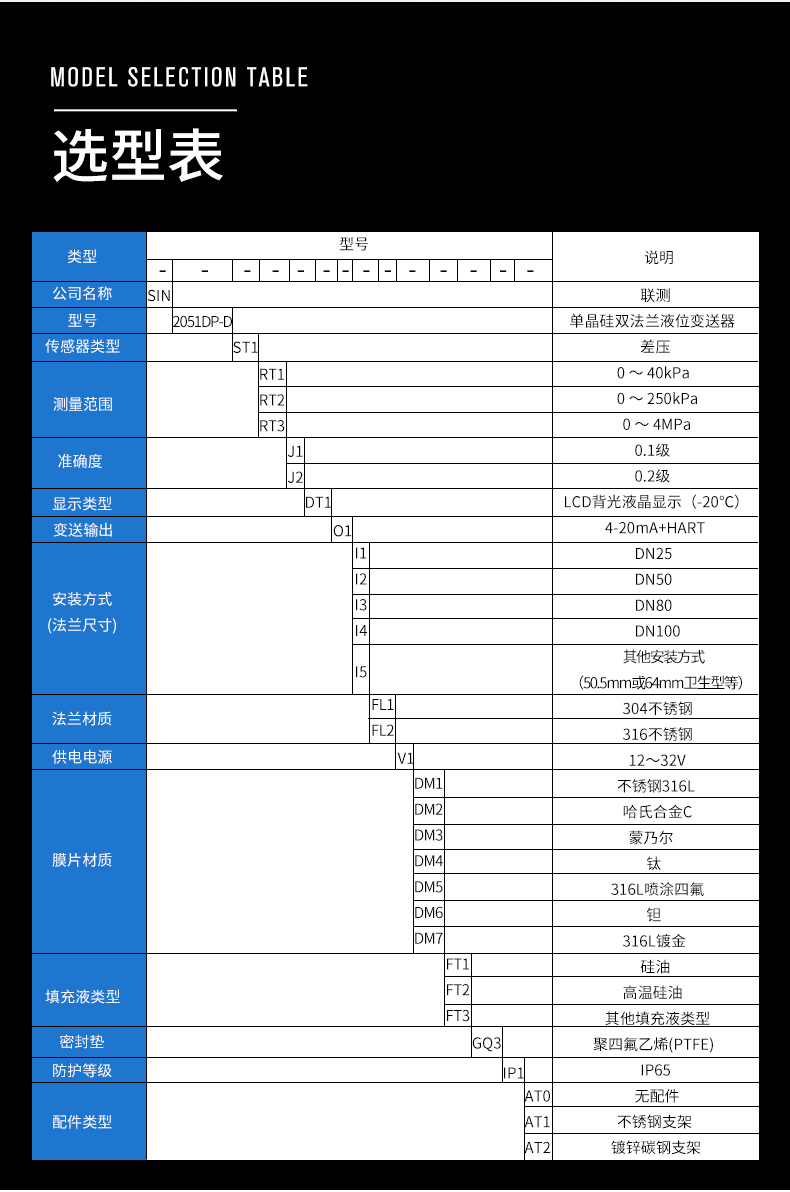 聯(lián)測儀表SIN-2051DP-D單晶硅雙法蘭液位變送器產(chǎn)品特點(diǎn):單向過壓最高可達(dá) 25MPa