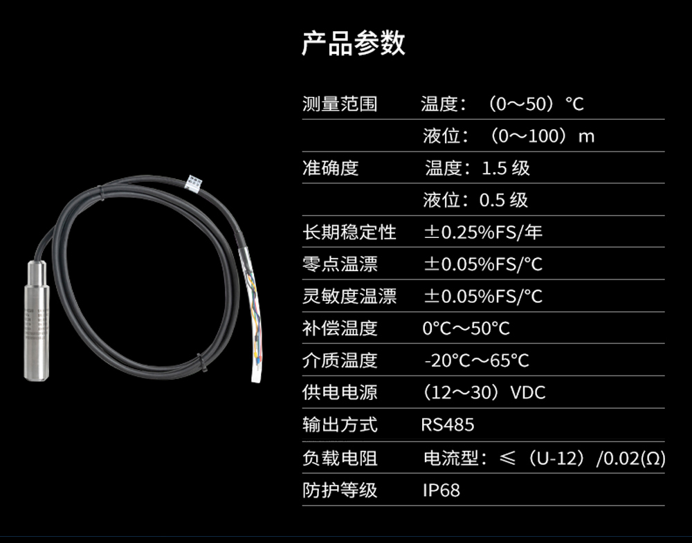 測量范圍 :溫度:(0~50)℃; 液位:(0~100)m