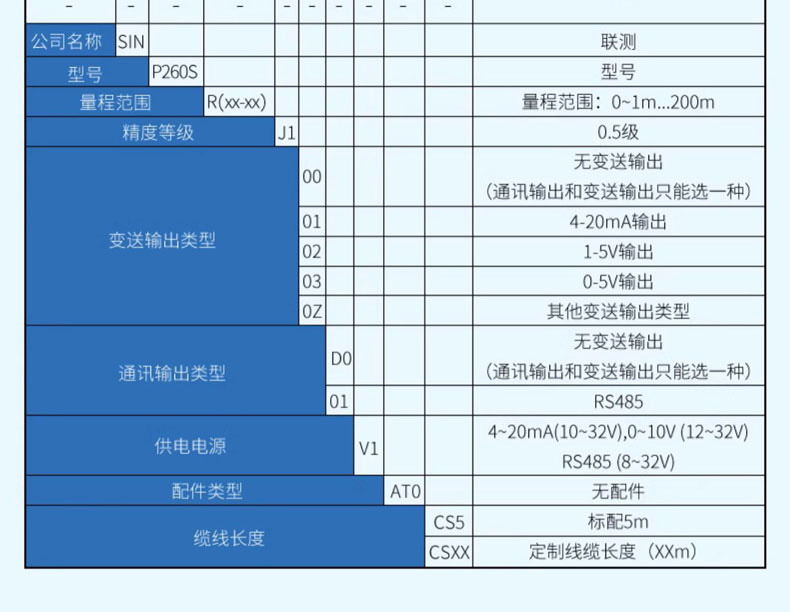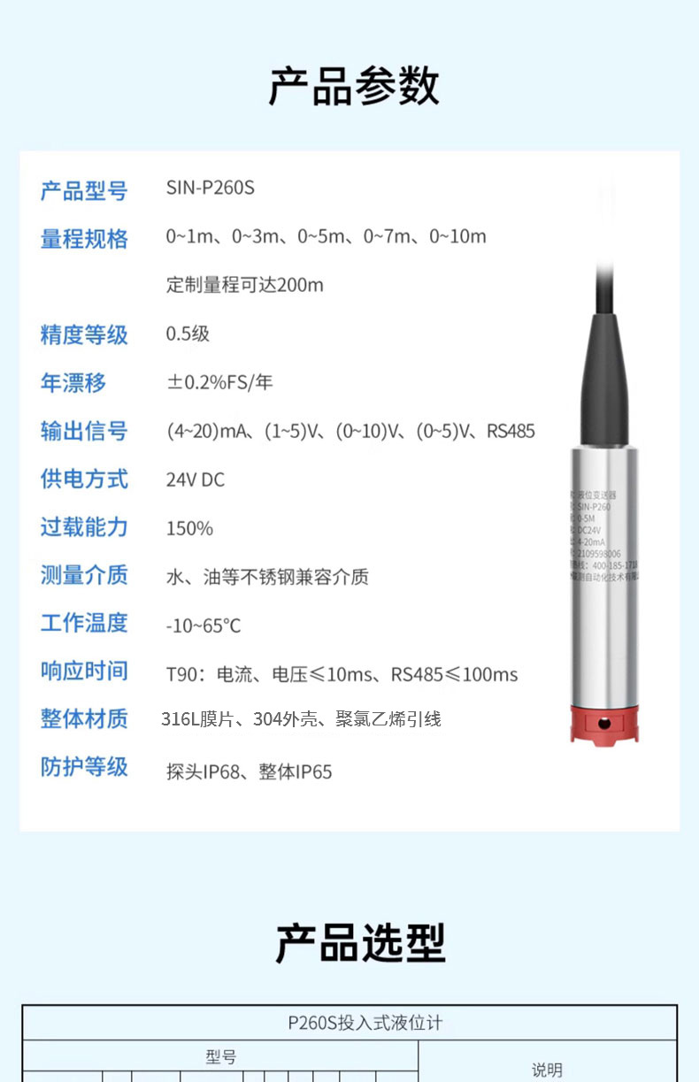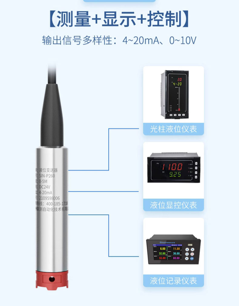 聯(lián)測儀表SIN-P260S新款投入式液位計產(chǎn)品特點:產(chǎn)品精度高、體積小、使用方便