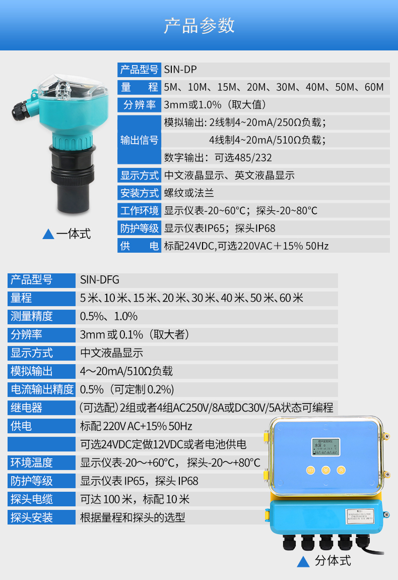 分體式超聲波液位計(jì)產(chǎn)品特點(diǎn):料位/液位兼容、分體式結(jié)構(gòu)、遠(yuǎn)程顯示