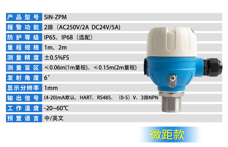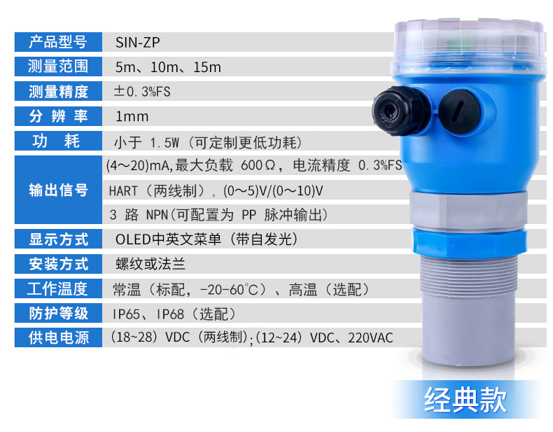 聯(lián)測儀表SIN-ZP超聲波液位/物位計產品特點:±0.3%高精度、五檔濾波,穩(wěn)定測量